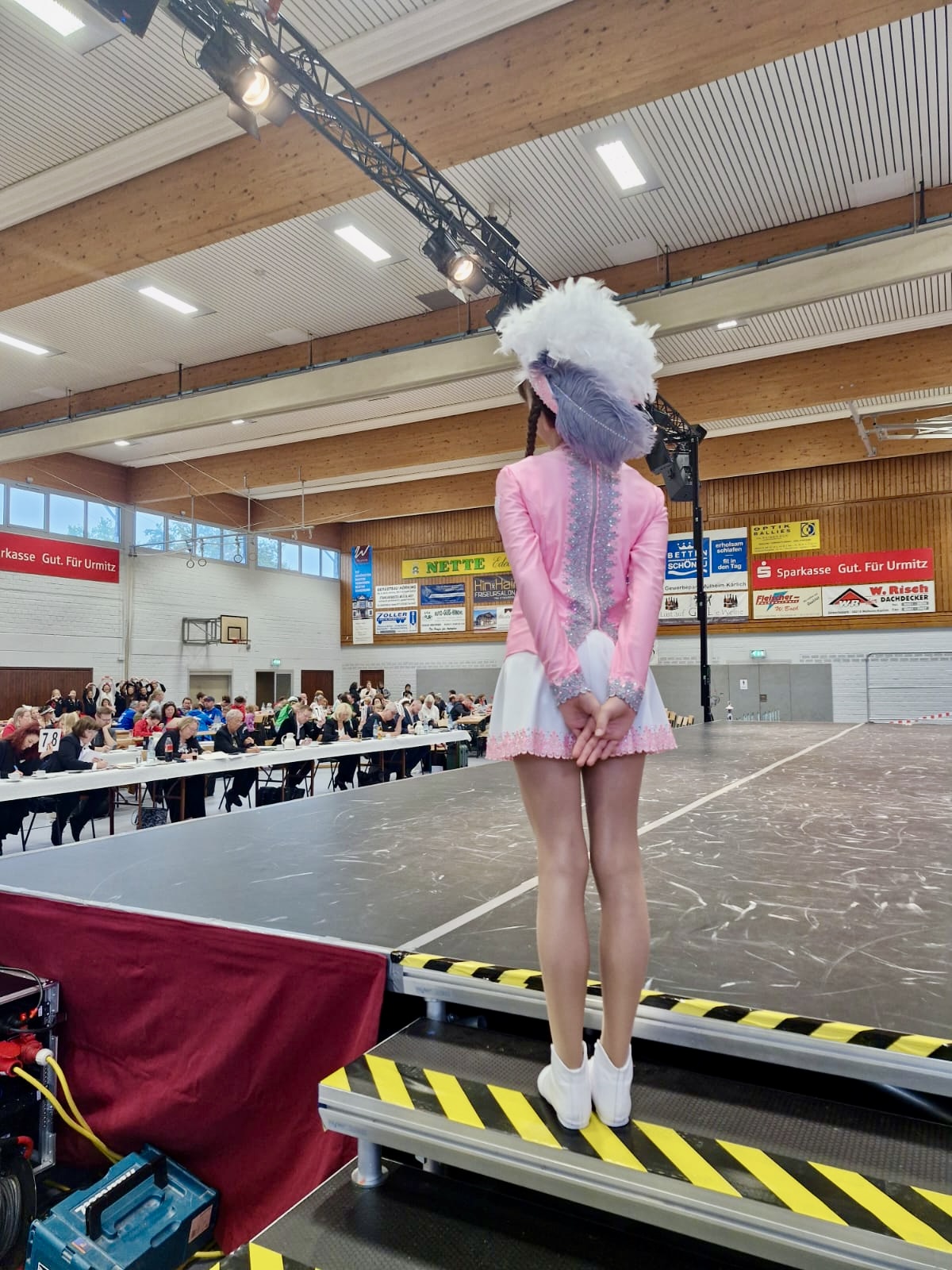 Bei den Junioren liefes leider nicht ganz so rund: noch kurz vor der Bühne eine zerrissene Strumpfhose und umziehen in Rekordgeschwindigkeit. 41,4 Punkte und Platz 4 waren es am Ende. Wir wissen dass ihr das besser könnt: Aufstehen und weiter machen!